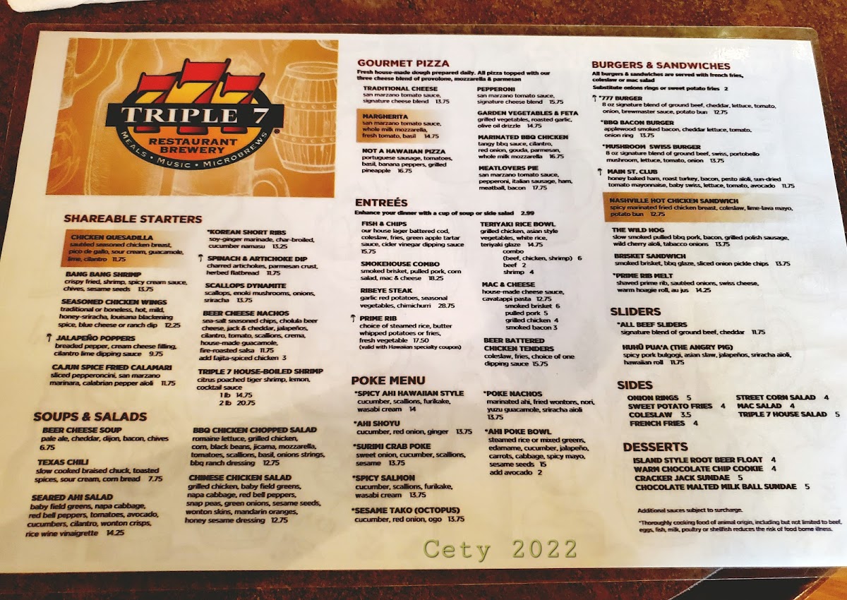 Triple 7 Restaurant and Microbrewery Menu